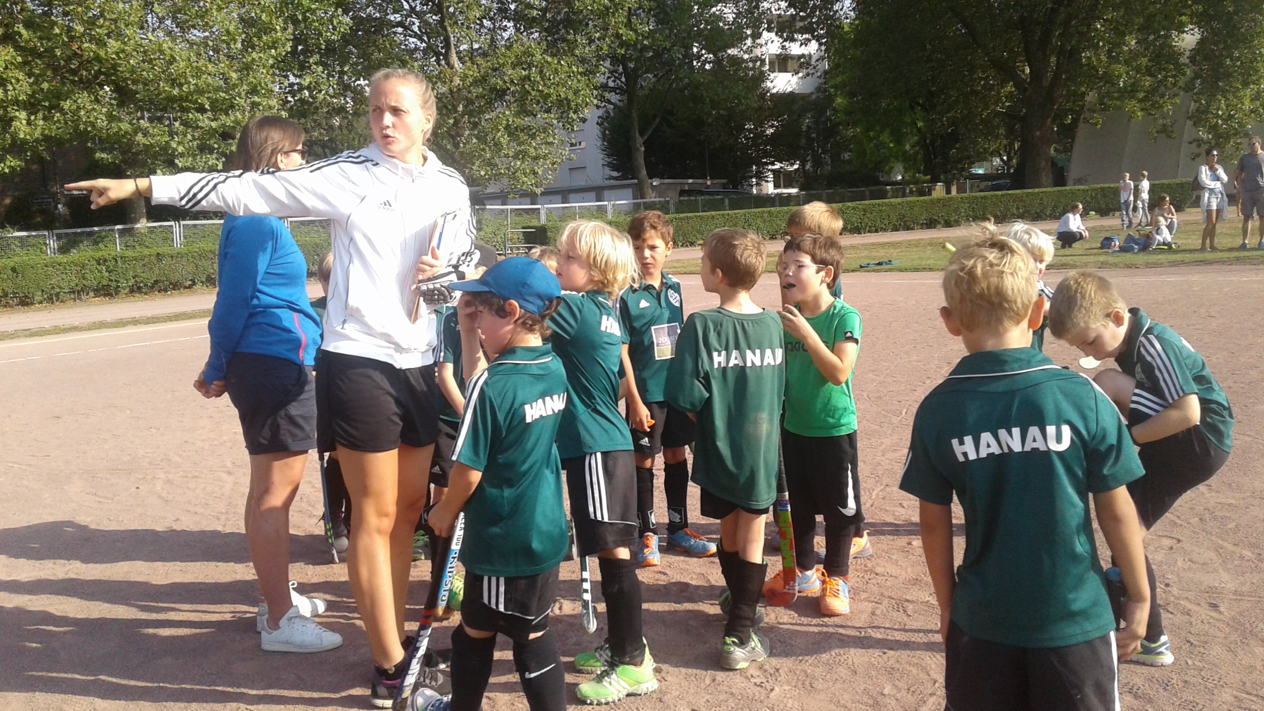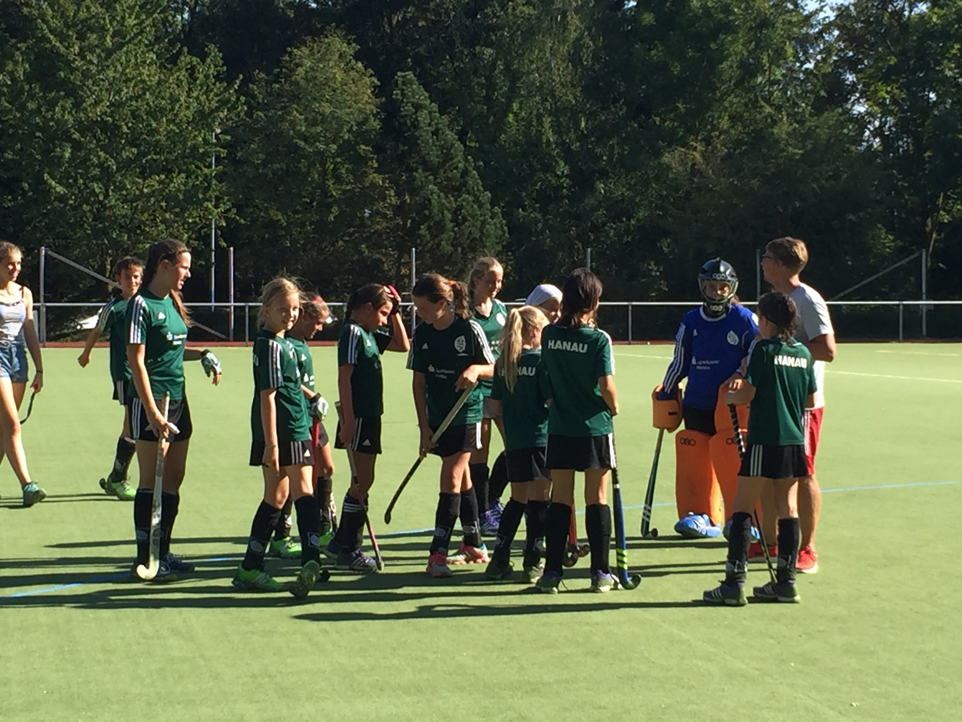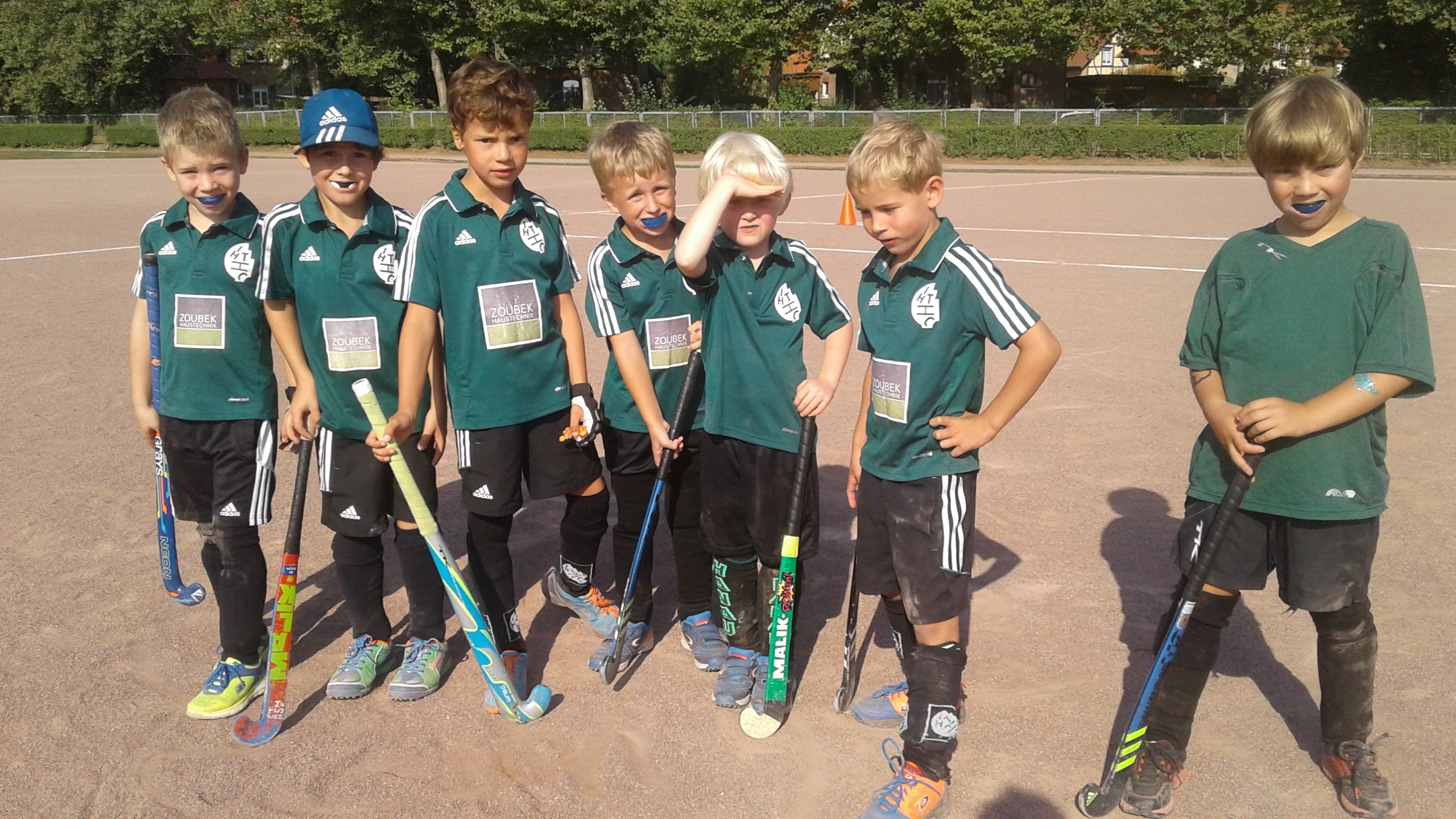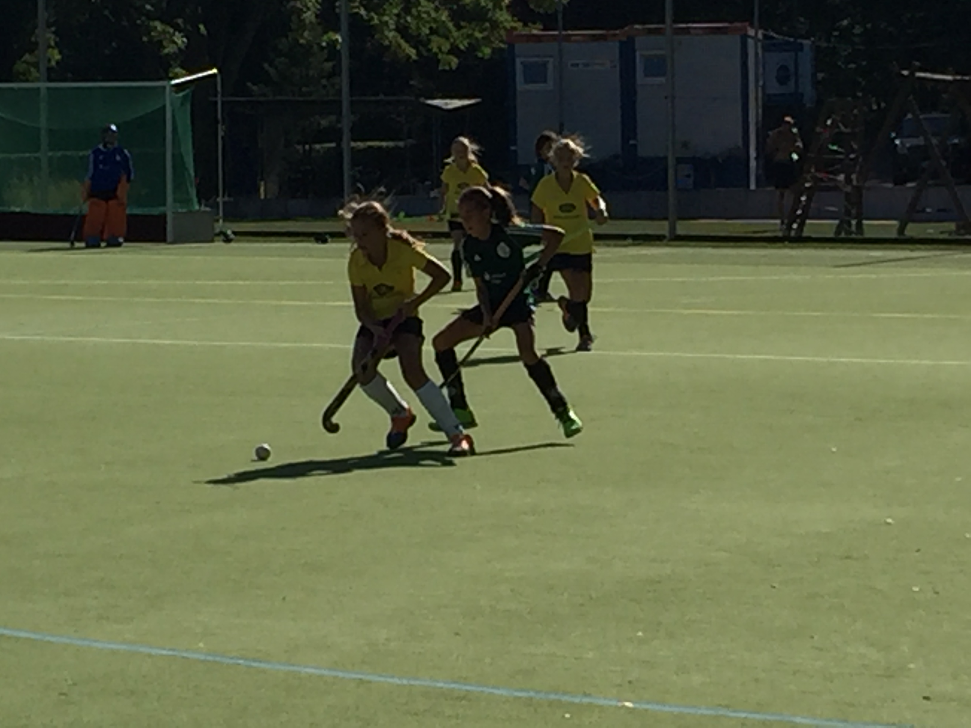 Sommerpause vorbei, Sommercamp noch in schöner Erinnerung, Hockeyabzeichen und die ersten Trainings absolviert, ging's am Samstag nach Frankfurt-Höchst zu unserem 5. Turnier in der Feldsaison 2016. Angekommen, kein Hockeyplatz zu sehen, aber doch schon einige Jungs von den anderen Turniermannschaften. Und die laufen mit ihren Hockeyschlägern auf einen Sandplatz. Nanu, ja das ist der Hockeyplatz vom Höchster THC, ein Hartplatz und für uns eine neue Erfahrung, denn wir sind eigentlich nur Kunstrasenplätze gewohnt. Was soll's - laufen wir erstmal - ohne eine Aufforderung durch unsere Trainerinnen - eine Platzrunde, um unsere Muskel aufzuwärmen, der Rest ist bereits durch die strahlende Sonne gewärmt.