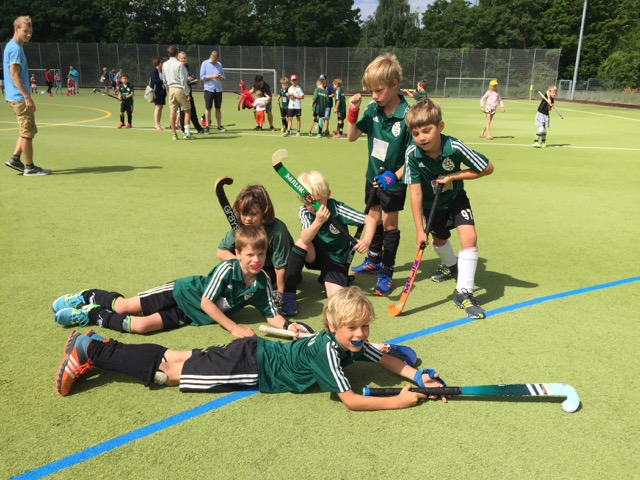 Elf D-Knaben mit ihren Eltern, Betreuern und Trainer machten sich am Samstag 24. Juni auf den Weg nach Sachsenhausen zum dritten Turnier in dieser Feldsaison. Da, wegen den hohen Temperaturen und Ozonwerten in der letzten Woche, das letzte Training durch unser Trainerteam Marilena Krauß, Noah Buntrock und Philipp Müller recht anstrengungfrei gestaltet wurde, waren alle froh, dass das Wetter ganz angenehm zu werden schien. Während die mitgereisten Eltern und Betreuer, teilweise frierend, auf den Beginn des Turniers warten wärmen sich die Spieler unter Anleitung der Trainer auf.