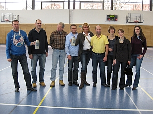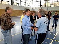 Da die Senioren bestes auswärtiges Team geworden sind, bekamen sie - genau wie die Seniorinnen - von Turnierorganisator Herbert eine Replik eines historischen Maßkrugs überreicht. Weil das Turnier nämlich "Maßters" heißt!!! |