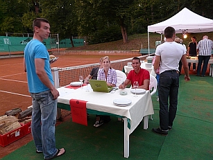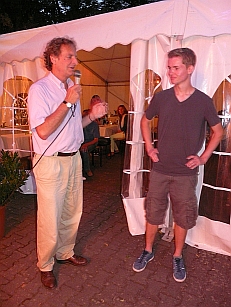 Vorsitzender Bernd Monsau dankte beim Sommerfest Björn Lach, der sein Freiwilliges Soziales Jahr beim THC beendet, für dessen überdurchschnittliches Engagement und seinen vorbildlichen Einsatz im Dienste des Clubs. Als Dankeschön überreichte Monsau dem Tennisspieler Lach eine Eintrittskarte für das Tennisrasenturnier Gerry Weber Open im kommenden Jahr. |