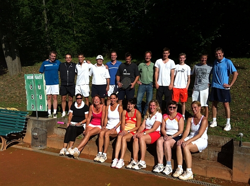 Von Marion Sulzmann und Philippa Deuschel Um 11:00 Uhr hielt Abteilungsleiter Peter Oberländer eine kurze Begrüßungsrede. Danach stellten Alexander Schamal (Sportwart) und Torsten Kraft (Trainer) per Losverfahren die Mixed-Doppel zusammen. Die Zusammenstellungen sorgten schon im Vorfeld für viel Spaß. Spielerinnen und Spieler aus den 1. Mannschaften mit Freizeitspielern oder mutigen Anfängern! Den krönenden Abschluss dieses Traumtages bescherte den Teilnehmern Clubwirt Markus mit einem Grillbuffet vom Allerfeinsten. So ein Tag wie dieser kann ruhig öfter stattfinden! Da waren sich alle Teilnehmer einig. Vielen Dank auch Alex für sein Durchhaltevermögen und sein spontanes Organisationstalent. |