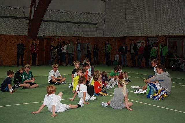 Über 20 Kinder nahmen am Nikolausturnier teil. Die Kinder wurden in drei Gruppen nach Alter und Leistung eingeteilt. Die Minis spielten im Kleinfeld, während die großen Kinder schon auf dem Großfeld spielten. Jeder sollte in seiner Gruppe gegen Jeden spielen. Eine Spielrunde dauerte fünf Minuten. Der Spaß sollte allerdings im Vordergrund stehen. Die erste Stunde wurden Einzelpaarungen gespielt und zum Schluss wurden Doppelpaarungen ausgelost, die zusammen um den Sieg kämpften. Zum Abschluss wurde „Sautreiben“ gespielt, ein Gemeinschaftsspiel, bei dem alle Kinder mitmachen konnten und jeder zum Einsatz kam.