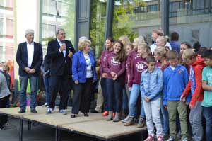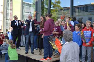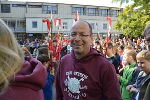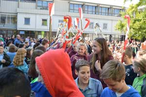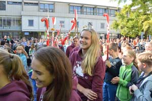 Das Gymnasium ließ es sich nicht nehmen, sogar das Schulorchester aufspielen zu lassen. Aber auch die Hockeyjungs mit Lehrer und Trainer Harry Koch, die in Berlin Achter geworden sind, wurden auf die improvisierte Bühne gerufen sowie die Ruderteams der KRS, die durch Krankheit geschwächt waren und in Berlin nicht ihre gewohnte Leistung bringen konnten.