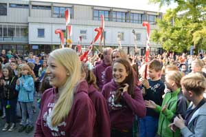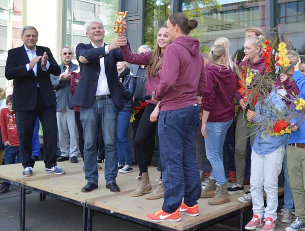 Großer Bahnhof der Karl-Rehbein-Schule für die Hockeymädchen