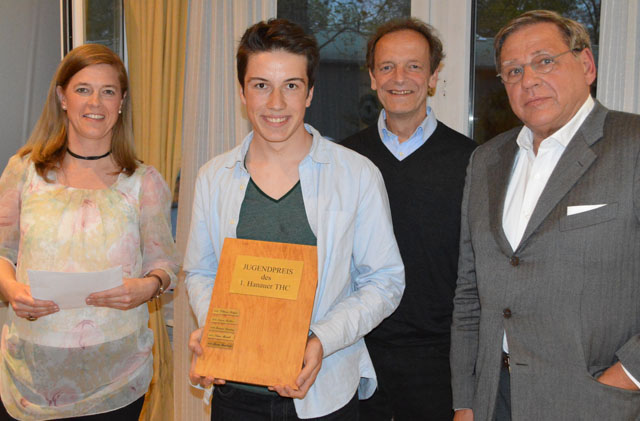 Seit 2007 ist der Jugendpreis des THC nicht mehr vergeben worden und so war es an der Zeit, wieder einmal diese Ehrung vorzunehmen. Andrea Dreger und Heike Heissel, die Jugendleiterinnen Hockey und Tennis, hatten sich im Vorfeld auf Aaron Buntrock (17) geeinigt, der als 16-jähriger bereits den Sprung in die erste Hockeyherrenmannschaft geschafft hat und sich auch im Jugendbereich stark engagiert. Andrea Dreger stellte unter Beifall der Mitglieder fest: "Aaron ist auf und neben dem Platz trotz seiner jungen Jahre ein Vorbild. Wir gratulieren ihm zum Preis und hoffen, dass er noch lange dem Verein die Treue hält".