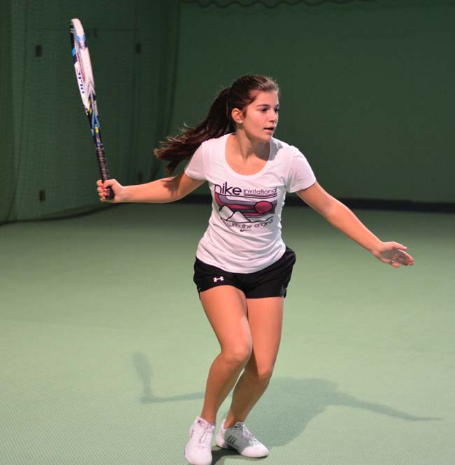 Zum Glück ging es am Sonntag erst gegen Mittag weiter, auch das Winterwetter machte keinen Strich durch die Rechnung und dem nächsten Match stand nichts im Wege. Nun war Sina Hermann (ebenso Jahrgang 2001 aus Karlsruhe) ihre Gegnerin. In einem sehr guten Match dominierte Rabea das Geschehen und gewann durch ihre druckvollen Schläge verdient 6:4 6:3. Am gleichen Abend ging es um 21 Uhr gegen Julia Rauer weiter, die im Match zuvor, ebenso überraschend die an Nummer 3 gesetzte Barbara Helfrich (Platz 300 der deutschen Damenrangliste) besiegt hatte. Nach einem intensiven und starken Match von beiden Seiten, zahlte sich nach 1,5 Stunden die mutigere Spielweise aus. Rabea gewann 6:3 2:6 10:8 und stand damit im Halbfinale, das am Dienstag Mittag für 12.30 Uhr angesetzt war.