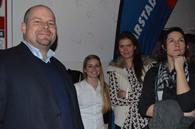 Patric Sokol, Jessica Breuer, Yana Mathias und Stephanie Kersten vor der Bekanntgabe des Wahlergebnisses im Hanauer Culture Club.