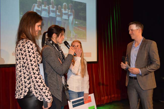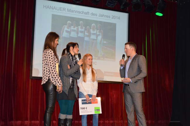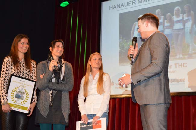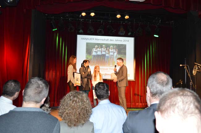 Bei der Verleihung im Culture Club am Mittwochabend konnten leider nur Stephanie Kersten, Jessica Breuer und Yana Mathias dabei sein, begleitet von Jugendwart Patric Sokol. Herrschte bei den Damen zu Beginn der Veranstaltung des Hanauer Anzeigers noch ein wenig Skepsis vor, war die Freude über den Titel um so größer, als dem Trio von HA-Redakteur Pascal Petry und einem Repräsentanten von Kaufhof Sport Urkunde und Einkaufsgutschein überreicht wurden.